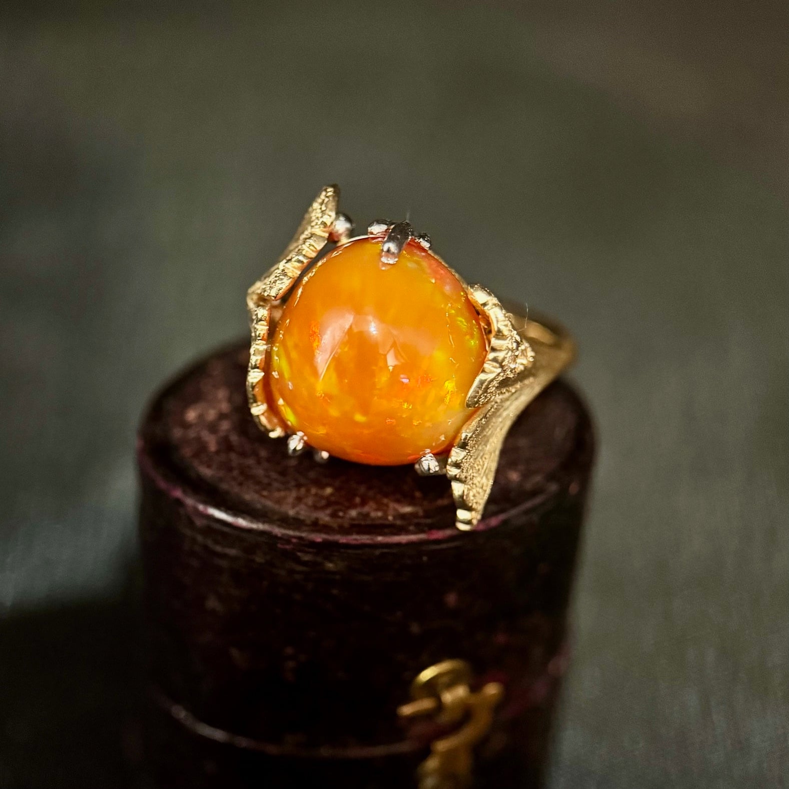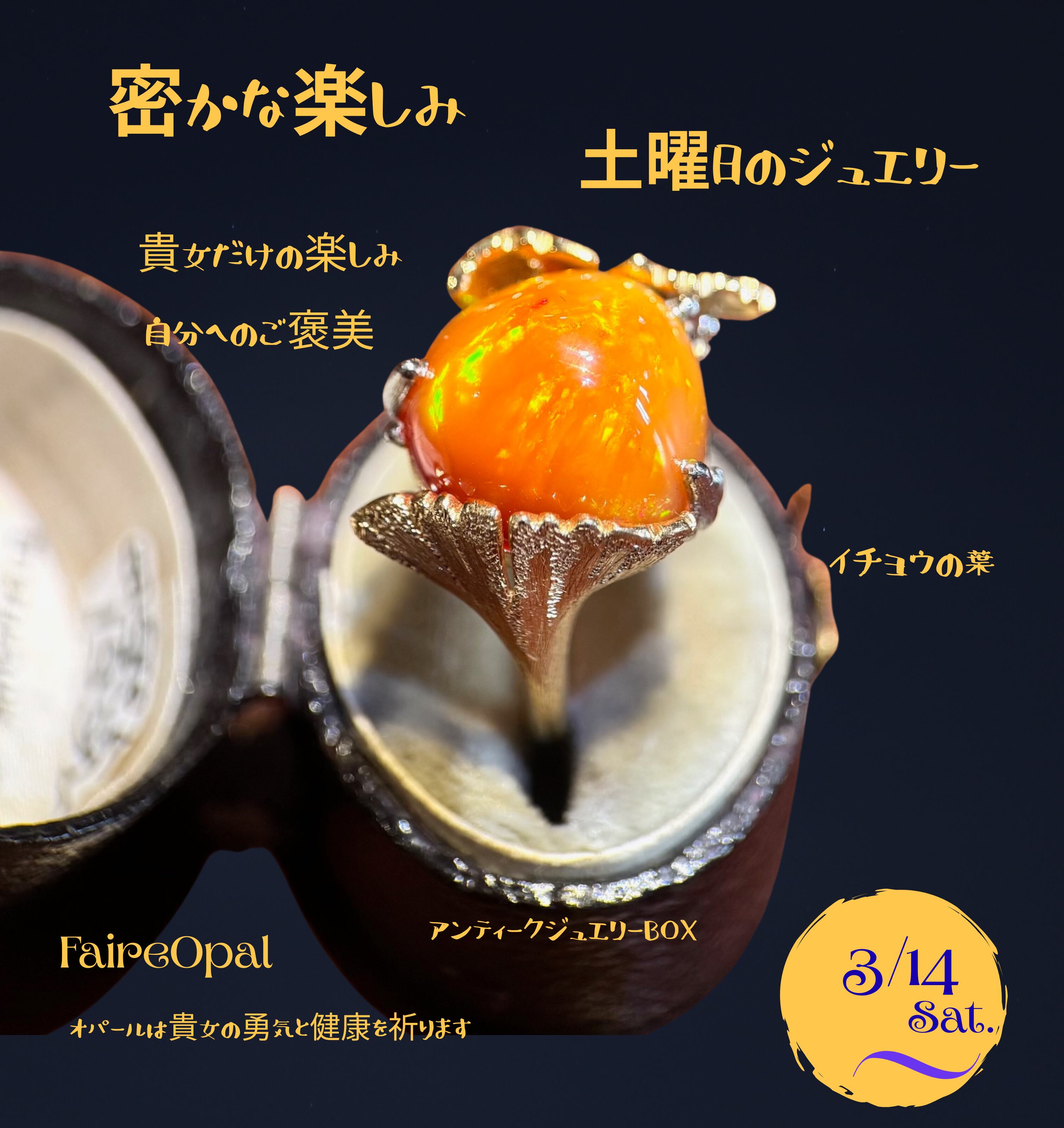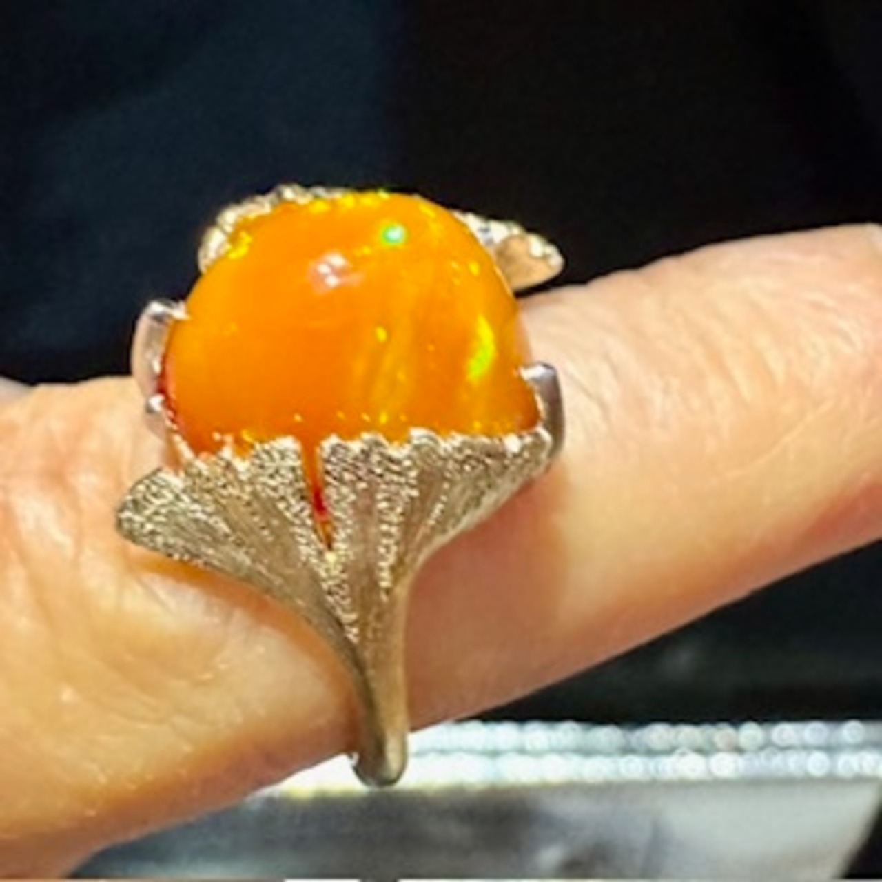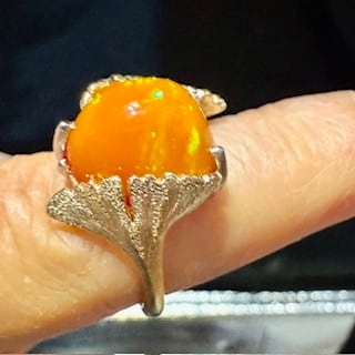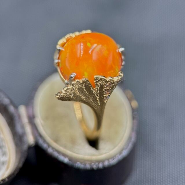メキシコファイヤーオパールリング イチョウの葉 アンティークジュエリーBOX3/14~特別価格